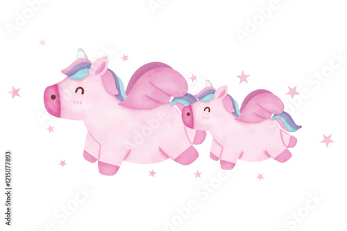 © Nattapohn, Naklejka premium Cute unicorn in watercolour style