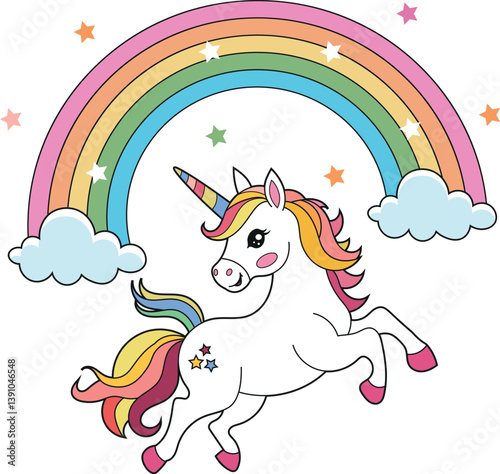 Fototapeta premium Cute Unicorn with Rainbow and Stars