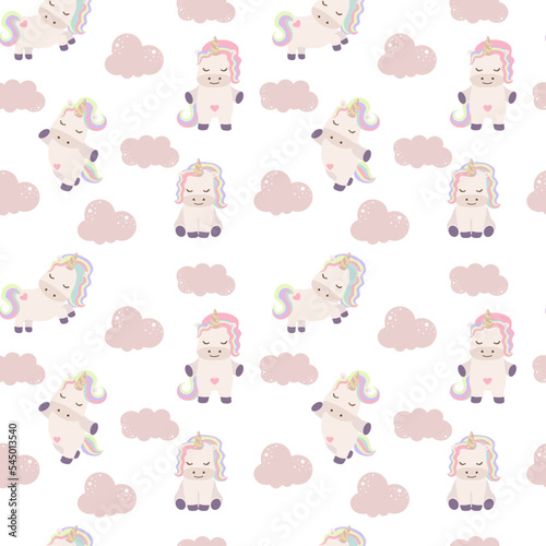 Obraz premium Cute unicorns, and pink background decoration. Seamless repeating pattern texture background design for fashion fabrics, textile graphics, prints etc