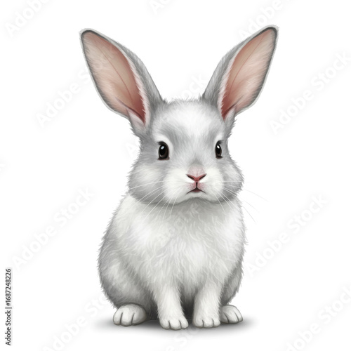 © Morad, Fototapeta premium Cute upright rabbit in soft gray and white tones, with geometric ears and minimal features, isolated on white background.