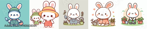 © TEGUH, Naklejka premium cute vector collection of rabbits gardening