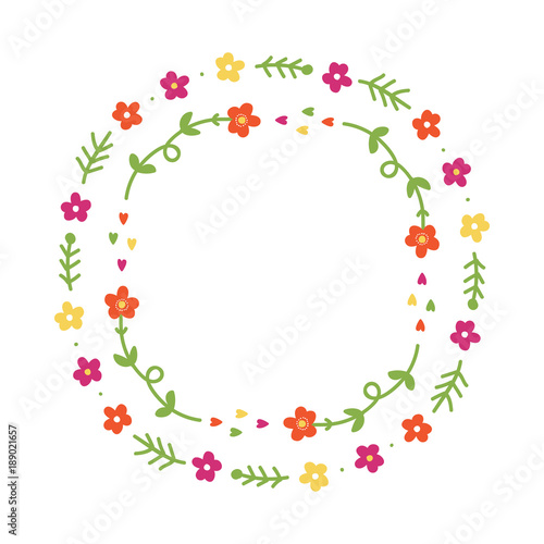 © cosmic_pony, Fototapeta premium Cute vector doodle floral frame for spring and summer design isolated on white background.