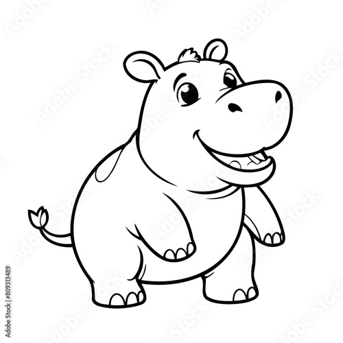 Fototapeta premium Cute vector illustration Hippo drawing for kids page