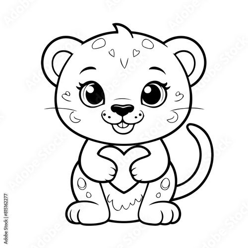 © meastudios, Naklejka premium Cute vector illustration Jaguar doodle black and white for kids page