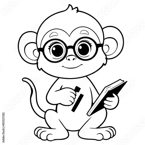 Fototapeta premium Cute vector illustration Monkey doodle for toddlers coloring activity