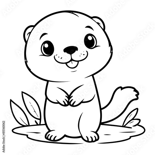 © meastudios, Naklejka premium Cute vector illustration Otter drawing for toddlers colouring page