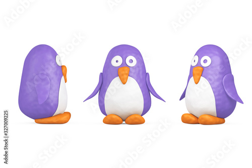 © doomu, Naklejka premium Cute Violet and White Toy Cartoon Plasticine or Clay Penguin. 3d Rendering
