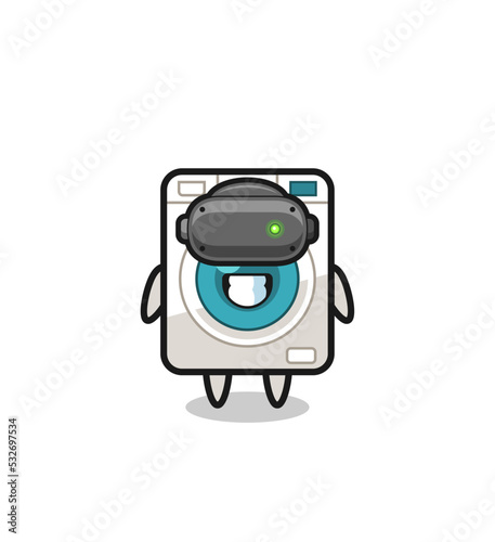 © heriyusuf, Fototapeta premium cute washing machine using VR headset