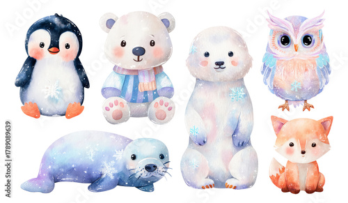© vectorizer88, Fototapeta premium Cute Watercolor Animals on Transparent Background for Children's Themes