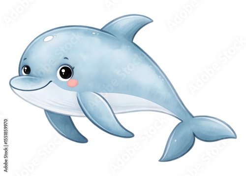 Fototapeta premium Cute watercolor dolphin isolated on white background