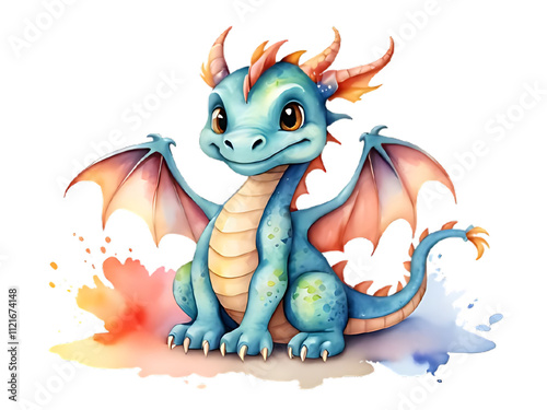 Fototapeta premium Cute Watercolor Dragon Clipart on Transparent Background - Adorable Fantasy Design for Creative Projects