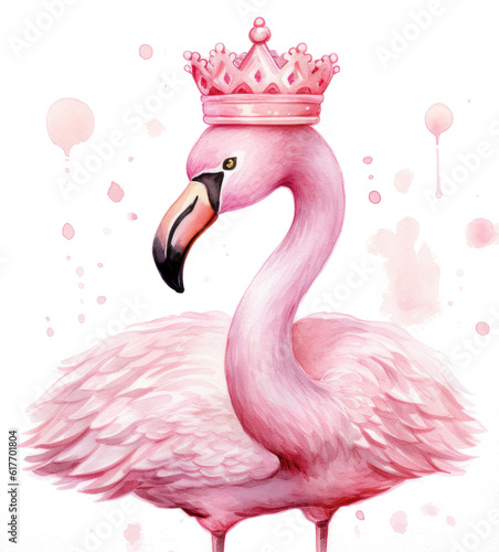 Fototapeta premium Cute watercolor flamingo princess. Illustration AI Generative