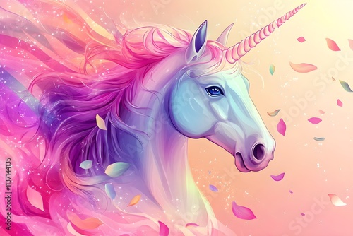 © Tanvir, Fototapeta premium Cute watercolor girls set - Little princess Magic unicorn in fantastic world with fluffy clouds and fairy meadows. Neural network AI-generated art