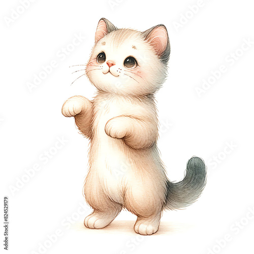 © Sukifli Dakheng, Obraz premium Cute watercolor hand drawn kitten. Illustration isolated on white background.