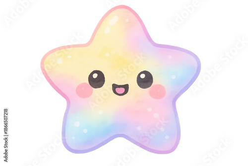 Obraz premium Cute watercolor pastel star smiling on transparent background