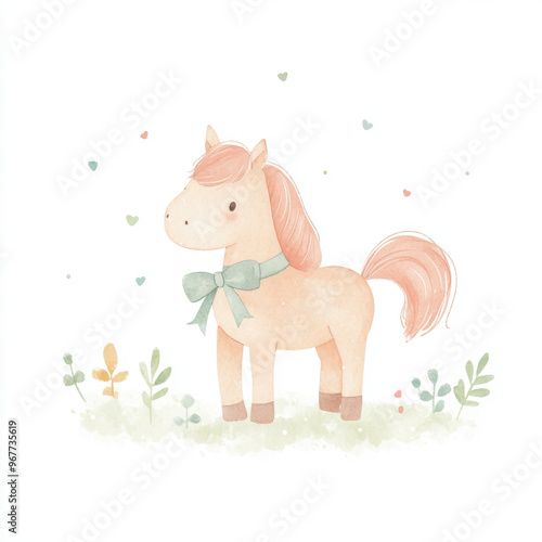 © warunthorn, Fototapeta premium Cute Watercolor Pony.