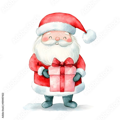Obraz premium Cute Watercolor Santa Claus Holding Christmas Present