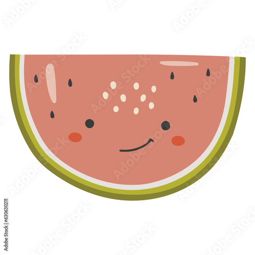 © ElenaVector44, Fototapeta premium Cute watermelon fruit vector, Fruit with face, Happy watermelon vector, Summer fruit with eyes, Kids funny illustration