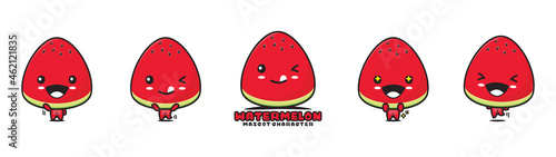 Fototapeta premium cute watermelon mascot, fruit vector illustration, with different facial...