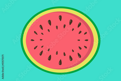 © Karolina Madej, Fototapeta premium Cute watermelon on blue background. Vector.