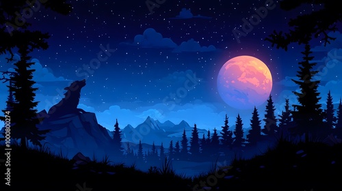© Sarawut, Naklejka premium Cute werewolf howling at the full moon with a playful expression