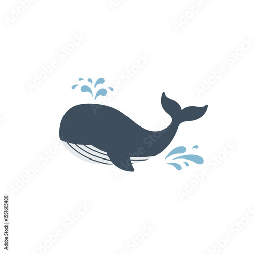 Fototapeta premium Cute Whale Silhouette with Water Splashes.