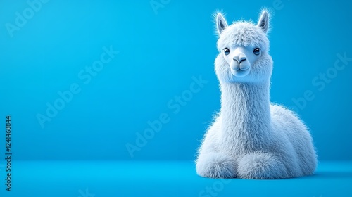 Fototapeta premium Cute White Alpaca Against a Vibrant Blue Background