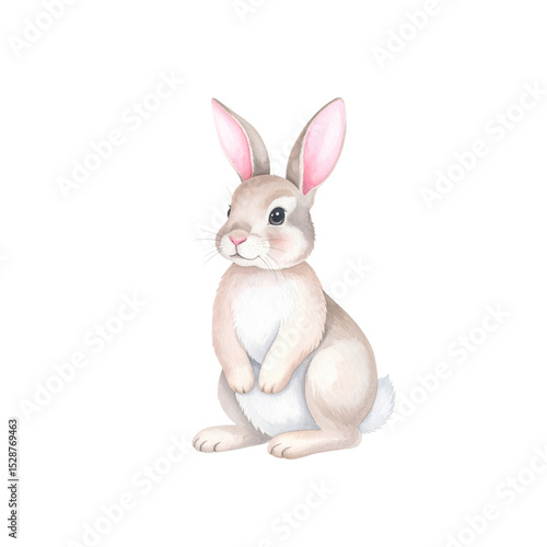 © yapayong, Obraz premium Cute white bunny animal with pink ears and an Easter egg, isolated on a white background