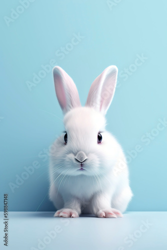 Obraz premium Cute white bunny. Generative AI.