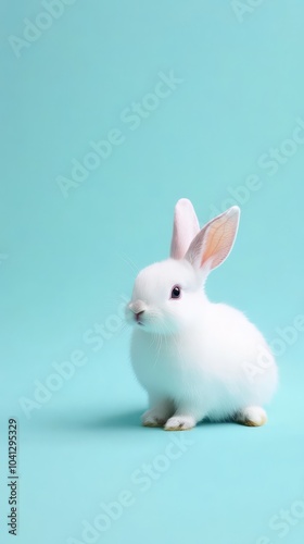 Fototapeta premium Cute White Bunny on Turquoise Background