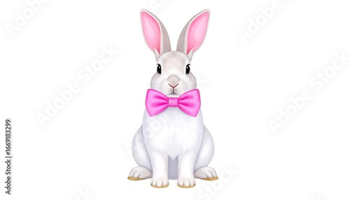 © Friska, Fototapeta premium Cute White Bunny Pink Bowtie.
