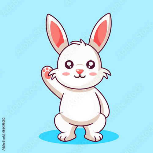 Obraz premium Cute White Bunny Waving Hello Vector Illustration Cartoon Design Kawaii