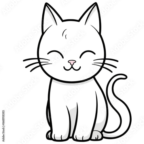 Obraz premium Cute white cat sitting happily in a playful pose at home