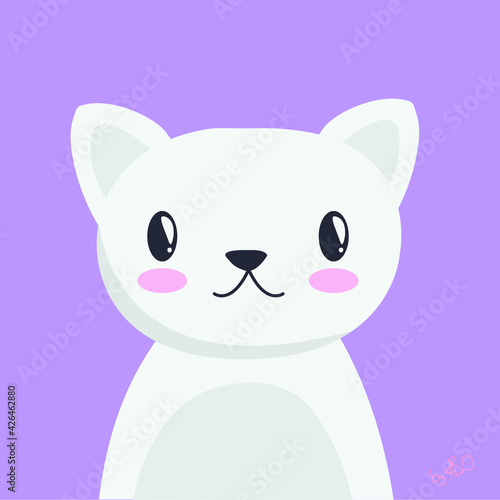 © AnneSgambato, Naklejka premium Cute white cat vector cartoon icon illustration purple background