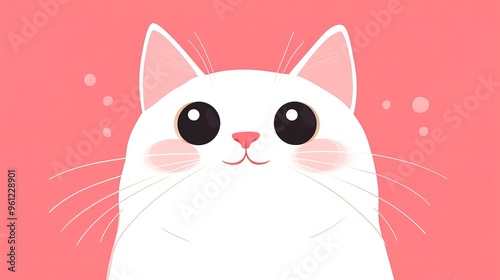 © OlScher, Obraz premium Cute white cat with large eyes against a pink background looking up happily