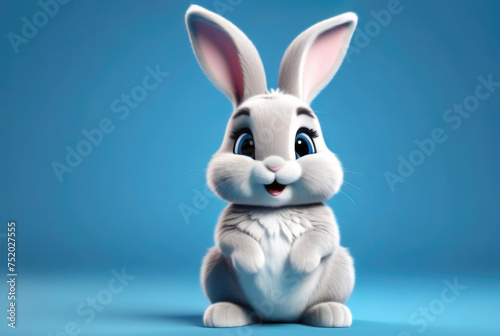 Obraz premium Cute white easter bunny sitting on blue background