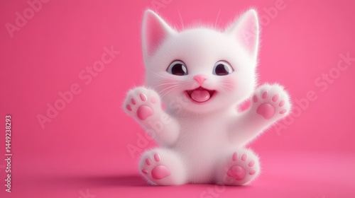 © Nurul, Obraz premium Cute white kitten, sitting, joyful expression