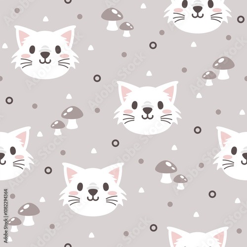 Naklejka premium Cute White Kitten Vector Pattern Fashion Designs.