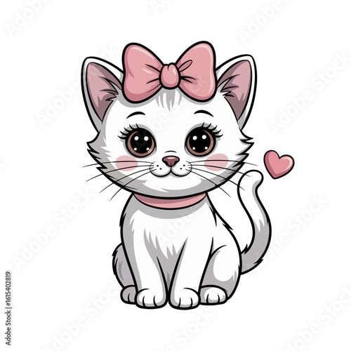 © Nur alam, Obraz premium Cute white kitten with pink bow and heart isolated on white background