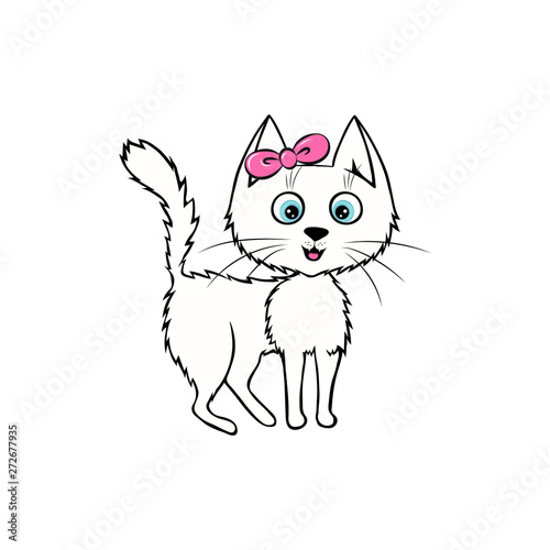 Obraz premium Cute white kitty isolated on the white background. Vector illustration in...