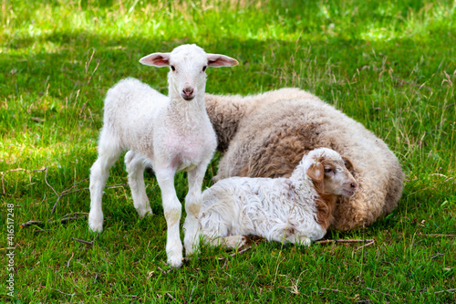 Obraz premium Cute white lambs with mom.