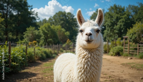 Obraz premium Cute White Llama Portrait on Sunny Farm