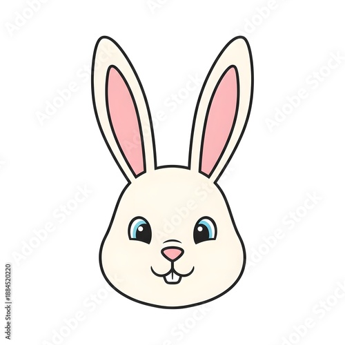 © Ayrton, Fototapeta premium Cute white rabbit face icon, bunny head mascot with blue eyes cartoon character vector isolated on white background