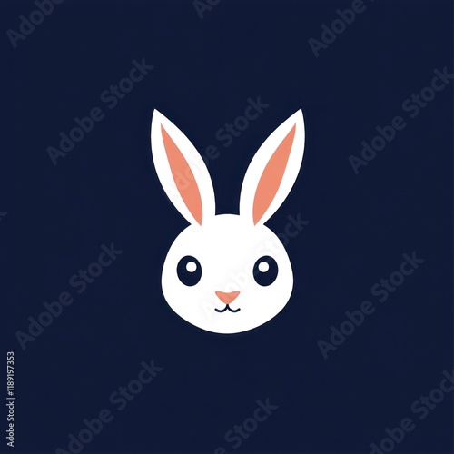 Fototapeta premium Cute white rabbit head, dark background, logo design