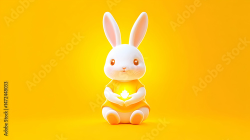 © mohadi, Obraz premium Cute white rabbit holding a light