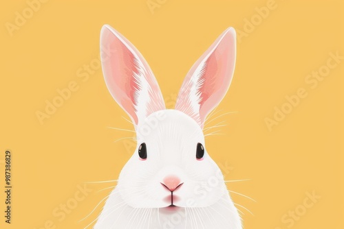 © Ilia, Obraz premium Cute white rabbit on yellow background