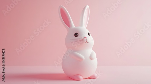 © Fatah, Obraz premium Cute white rabbit, pastel pink background