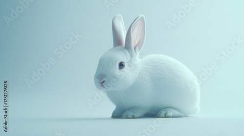 Fototapeta premium Cute White Rabbit Sitting on a Soft Light Background