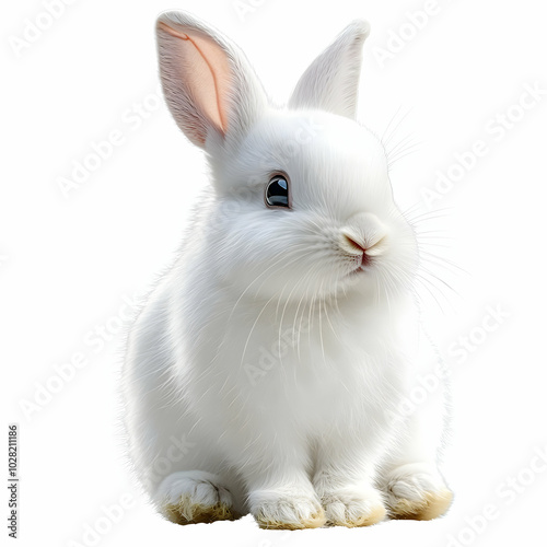 Obraz premium Cute White Rabbit Sitting on White Background.