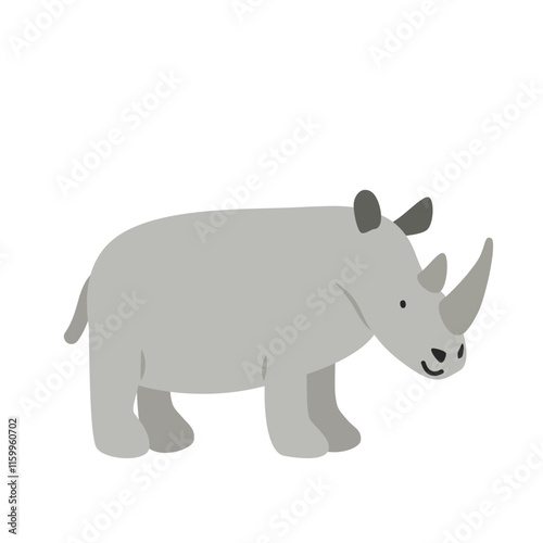 © Vinh, Fototapeta premium Cute white rhinoceros cartoon clipart. Rhino vector illustration in flat style. Hand-drawn wild animal concept